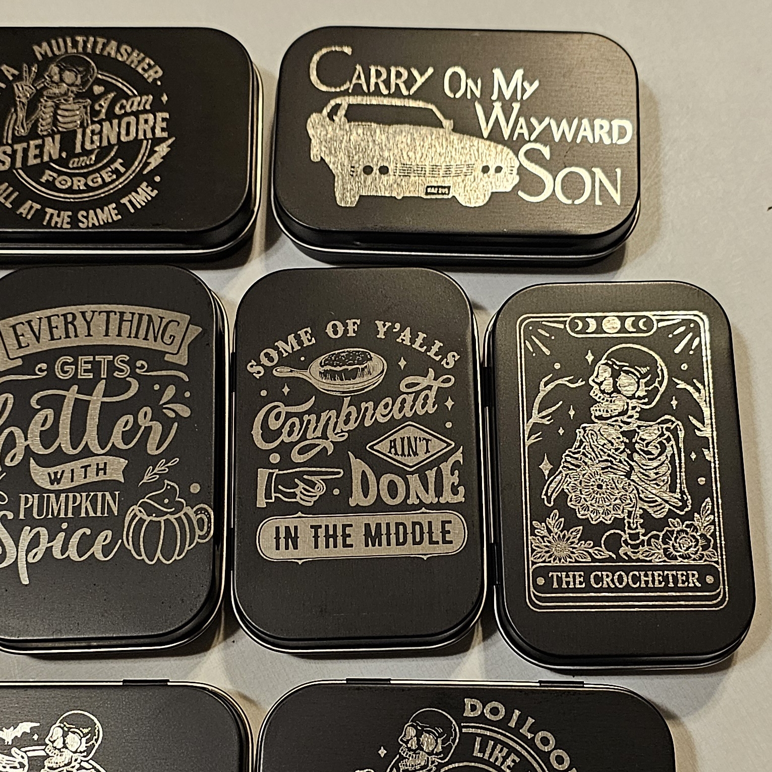 This engraved metal tin combines personalized charm with durable construction. Its sleek design makes it a stylish and functional storage solution for small items like keepsakes, jewelry, or office supplies. Perfect for gifting or personal use, this tin is an elegant way to add a touch of individuality to your everyday essentials.